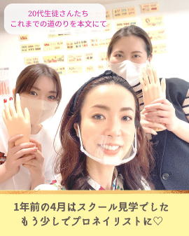 働きながら無理なく通えると社会人に人気ネイルスクール 検定合格率・就職率も高く、卒業生も多数。。